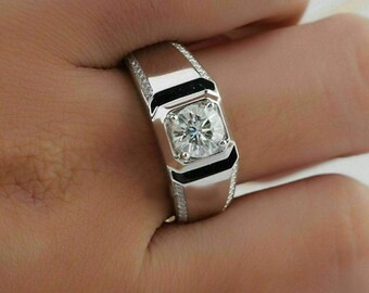 Mens Moissanite Ring Men S Silver Solid Gold Unique Etsy