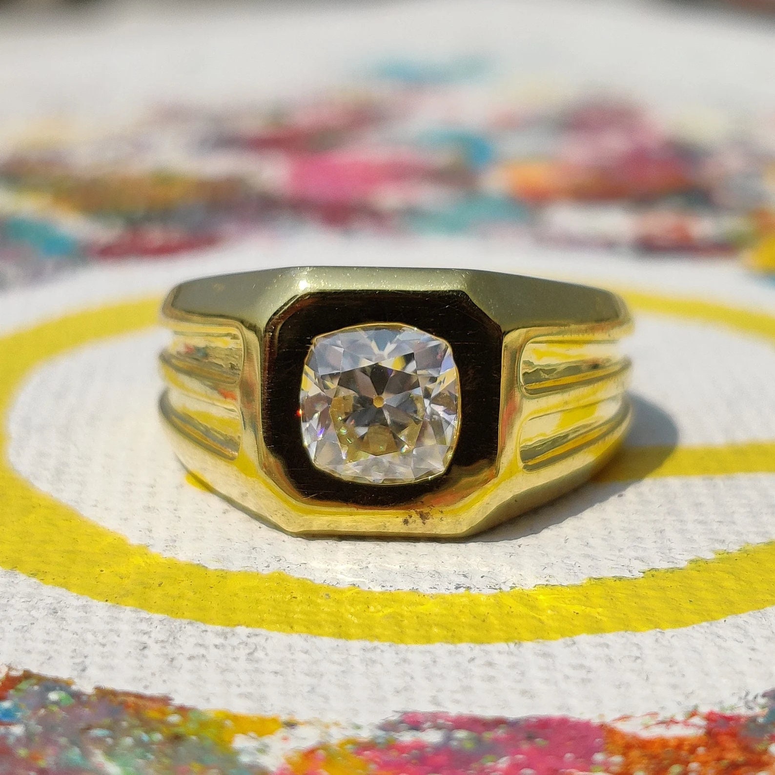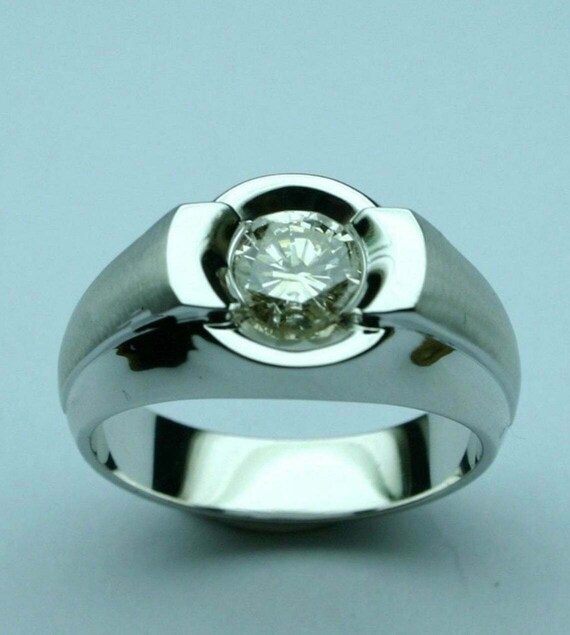 Mens Moissanite Ring Solitaire Ring Oec Diamond Ring Etsy