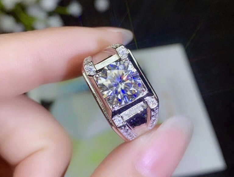 Men S Moissanite Ring 2 1ct Colorless Moissanite Ring Etsy
